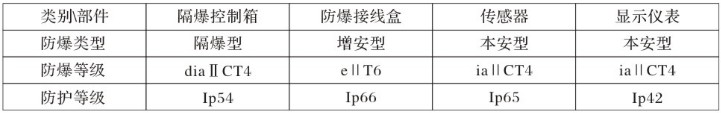 2、該裝置一般由隔爆控制箱、防爆接線盒、傳感器與硅示儀表組成,防爆與防護等級為: